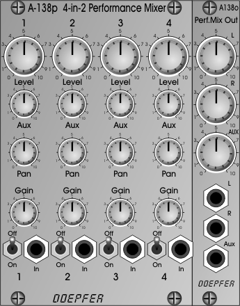 performance mixer (instead of an external stand-alone mixer). Module A-138p is