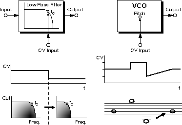 control voltages affecting a filter (VCF) and an oscillator