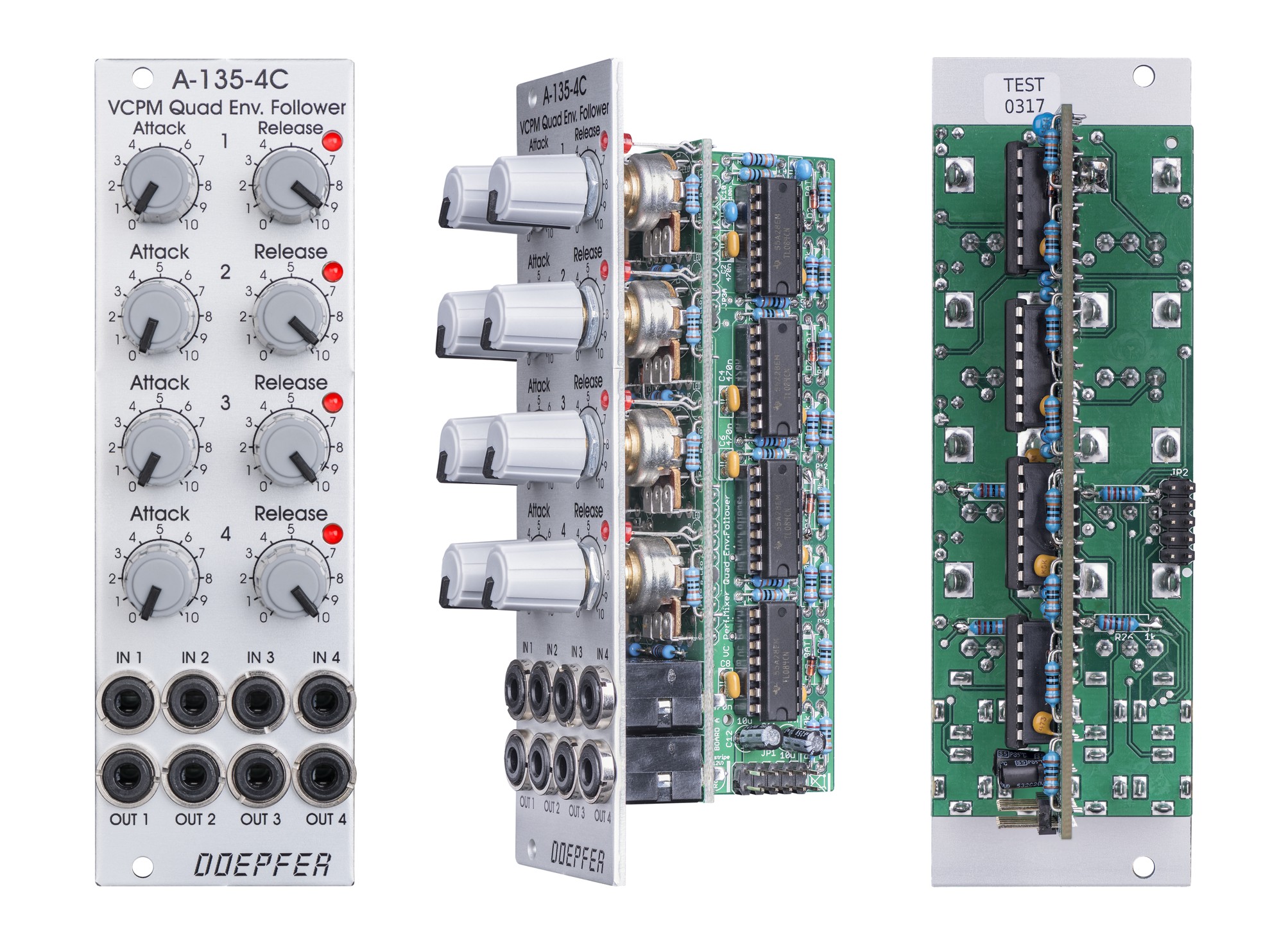 jeden Kanal. Das Modul ist dazu gedacht aus den vier Eingangssignalen des A-135-4A Hüllkurve-Signale abzuleiten, die dann wiederum zur Steuerung von