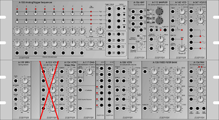 meherer Module gegen andere Typen). The prices for system suggestions have to be re-calculated because of the new prices valid from January 2007. This is why there are no prices in the above list. If you are interested in one of these systems before the above price list is completed please contact sales@doepfer.de for a quotation. You may even use the file A-100 Planner (Excel™ file) to plan your system. For this you have to transfer the above module quantities to the Excel file. You may even modify the system by replacing one or more modules by other ones. |