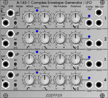A-100 modules. The front panels are partly shown