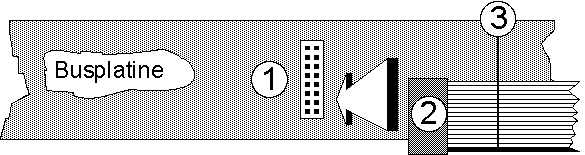 A Achten Sie darauf, daß die farbige Markierung des Kabels beim Blick auf die Busplatine unten liegt (s. 3 in Abb. 2) und daß die Buchsen bündig (nicht seitlich versetzt) auf den Steckern sitzen, da andernfalls die Module bei Inbetriebnahme zerstört werden!