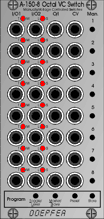 Redesign A-150. Ab Mai 2004 wird das Modul in einer überarbeiteten Version ausgeliefert, so dass der volle Spannungsbereich des A-100 (-12V....+12V) verarbeitet werden kann. Die bisherige Einschränkung auf -8...+8V entfällt. Die neue Version kann von der alten Version durch den Platinenaufdruck unterschieden werden ("A-150 DUAL VC SWITCH VERSION 2"). Zur Unterscheidung können auch die ICs dienen: bei der alten Version besitzen die beiden ICs auf der Platine die Bezeichnung "CD4053", bei der neuen Version "DG409". Es ist leider nicht möglich die alte Version des A-150 auf die neue Version upzudaten, da die gesamte Schaltung geändert wurde. bereits lieferbar |