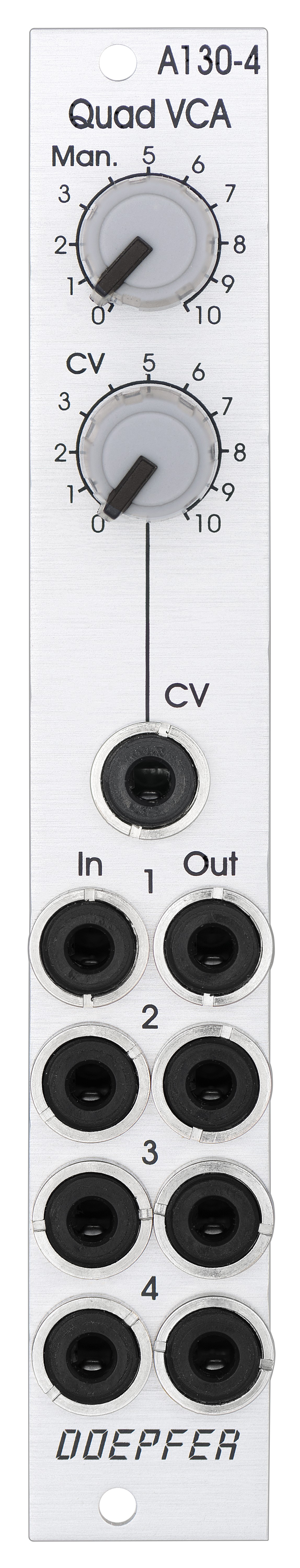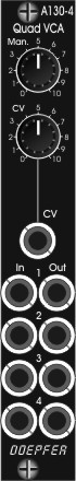 Das Modul A-130-4 beinhaltet vier lineare VCAs