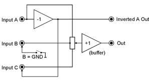 at the output. Similar to the two-way crossfader but without signal in the