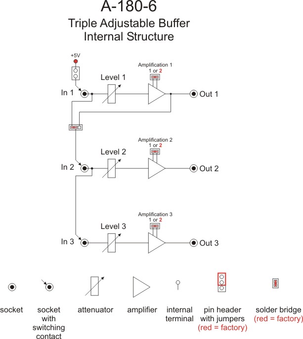 separately adjustable levels for each unit. The maximum amplification is 1 (factory