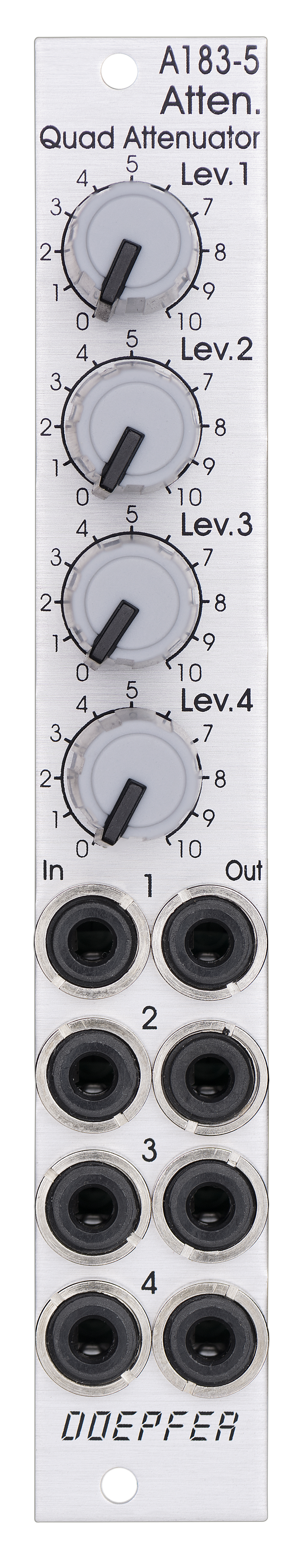 to four devices which can be powered or charged via USB (e.g. keyboards, smartphones). The module has no USB function but provides only a +5V supply for USB devices. A control LED shows if the +5V voltage is present. Note: The module requires an A-100 case with built in power supply A-100PSU3 ! Only this A-100 supply has the required +5V available. We do not recommend the usage of an older A-100 case with A-100PSU2 as this would require the +5V adapter A-100AD5 and the max. current would be limited to 100mA. To find out if your A-100 case is equipped with the A-100PSU3 please refer to the FAQ page. In particular module A-183-9 cannot be installed into the cases A-100LC1, A-100LC3 or A-100MC because these cases do not have +5V available (A-100LC3) or the current at +5V is very limited (only 50mA for A-100MC or A-100LC1). This document explains the connection of the module to the A-100 bus board: A183_9_bus_connection.pdf Technical notes:
