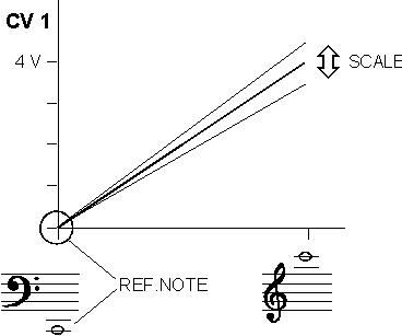 REF.NOTE ist die Referenznote, d.h. die Note auf dem MIDI-Keyboard, die dem tiefstmöglichen Ton auf dem analogen Synthesizer entspricht (in der Regel MIDI-Note 36).