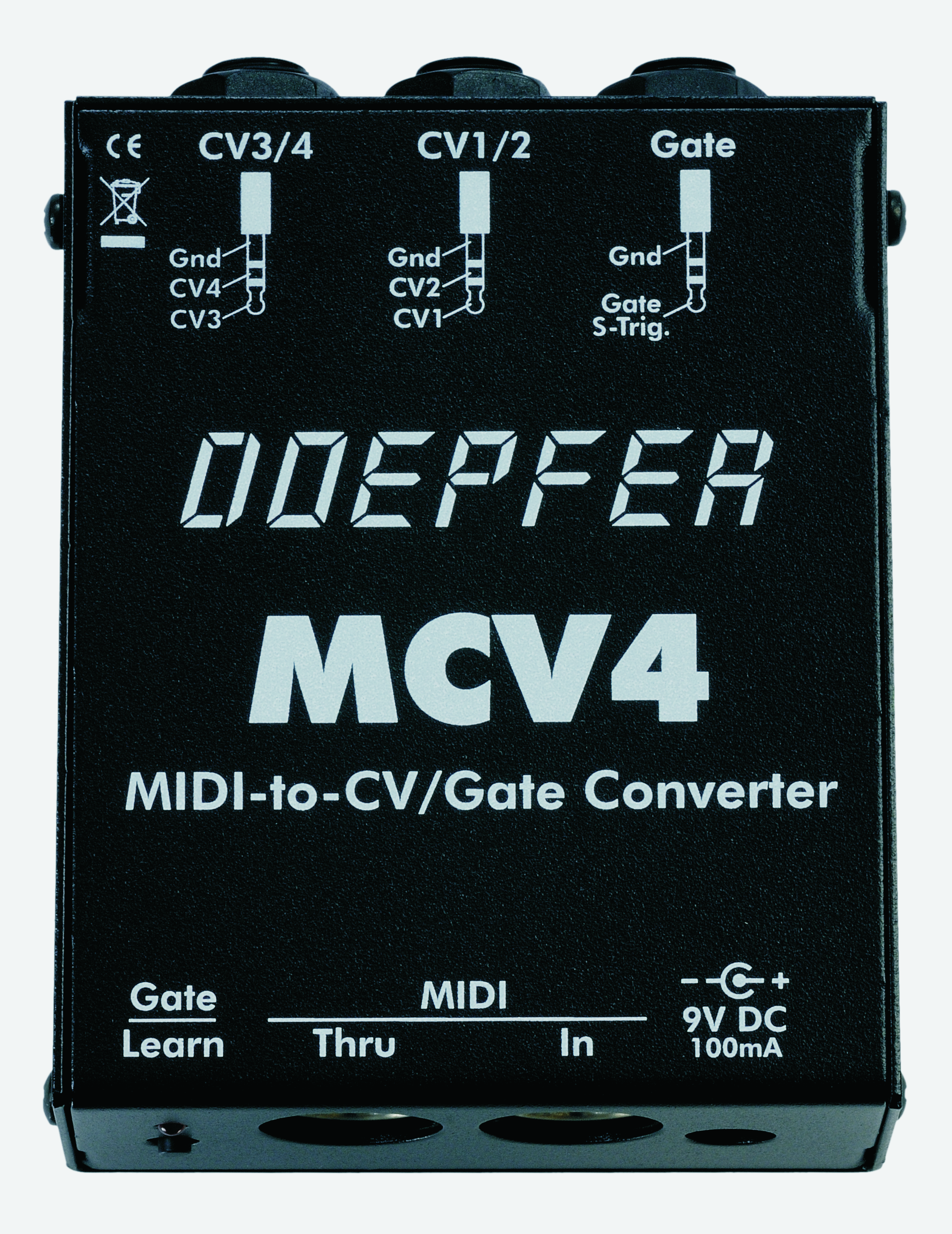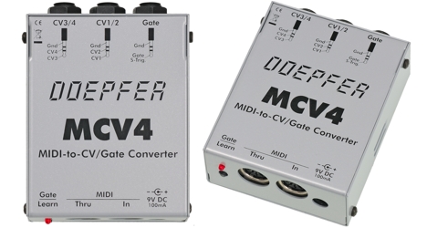 MCV4 ist ein preiswertes MIDI-to-CV-Interface, mit dem monophone Synthesizer über MIDI angesteuert werden können. MCV4 liefert 4 analoge Steuerspannungen (CV1...4) und ein Gate- bzw. Trigger-Signal. |