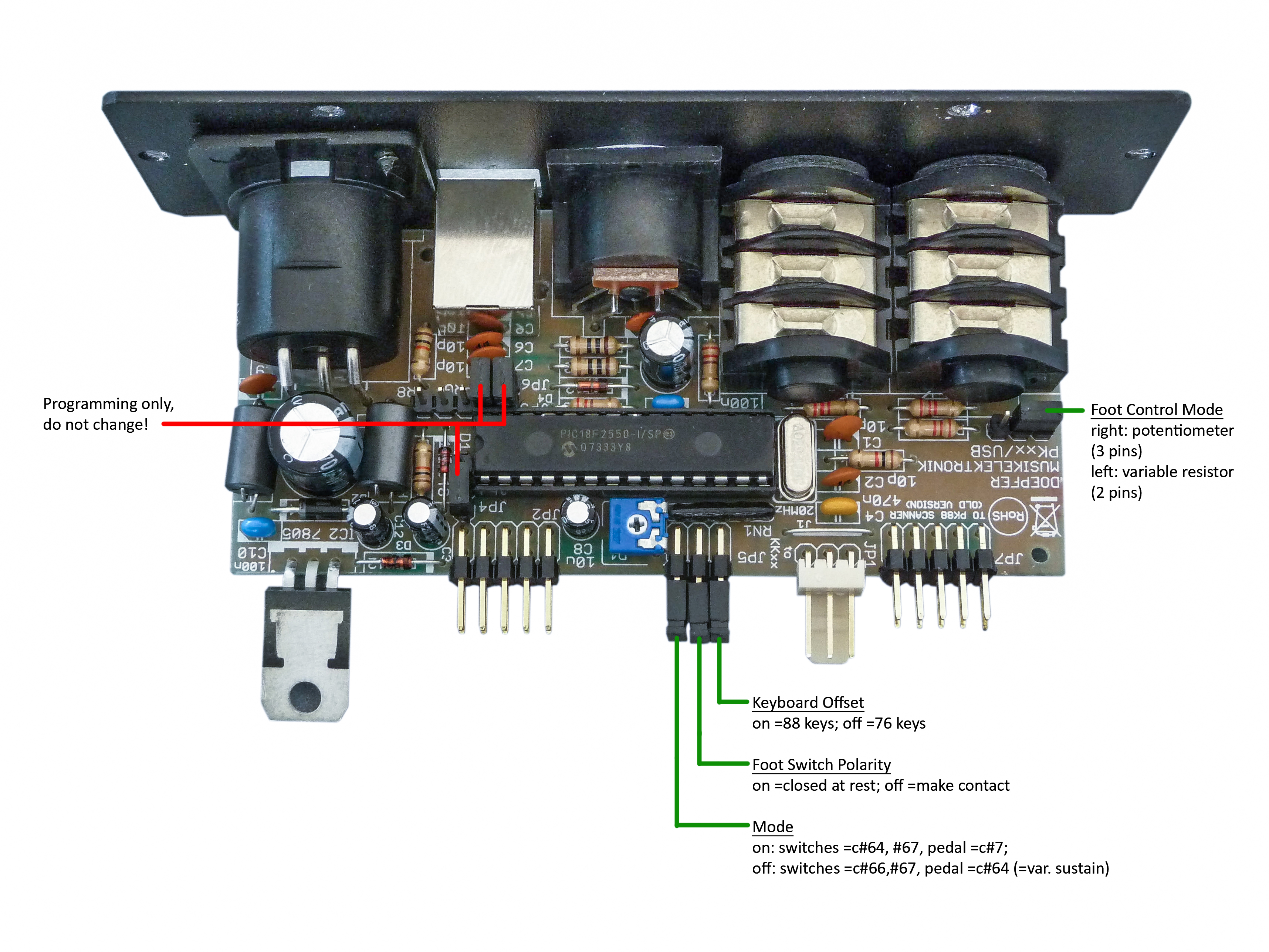 The position and function of the jumpers is described in this document: PK88_USB_jumper_settings.jpg |